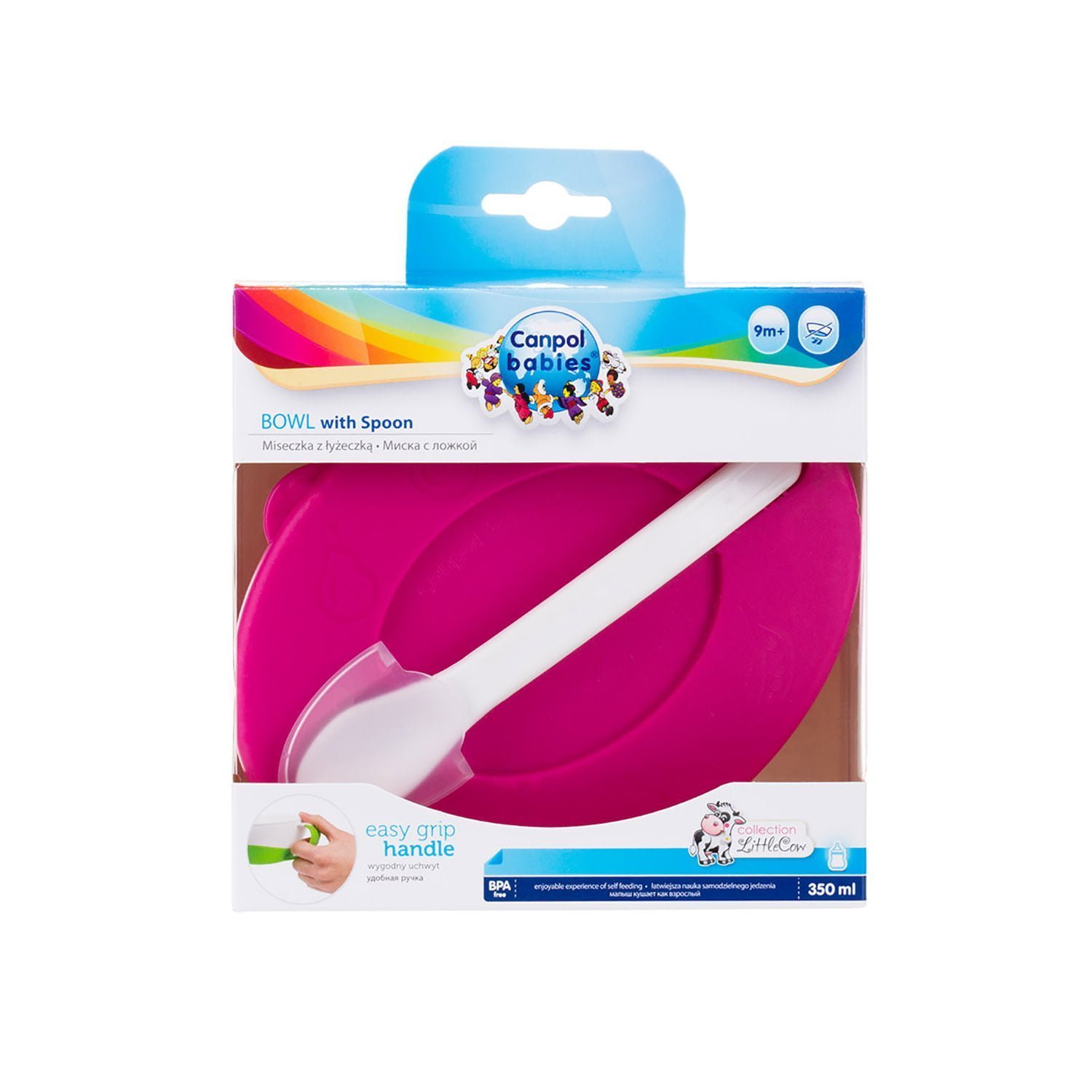 CANPOL Miseczka z łyżeczką i pokrywką Różowa 350ml