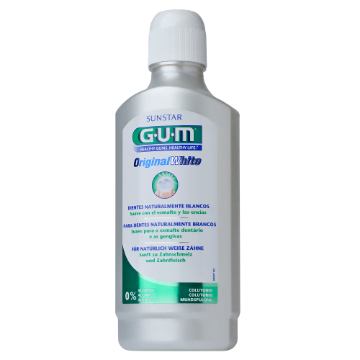 Zęby z czasem tracą swą naturalną białą barwę. Przebarwienia te zazwyczaj biorą się z barwników z żywności, napojów, palenia tytoniu, leków, a także przez proces starzenia się. Nasi eksperci opracowali gamę GUM Original White, aby nie tylko skutecznie usuwać przebarwienia, ale także by zapobiegać ich ponownemu pojawieniu się. Płyn do płukania GUM Original White to efektywne i łatwe w użyciu uzupełnienie codziennej pielęgnacji jamy ustnej.