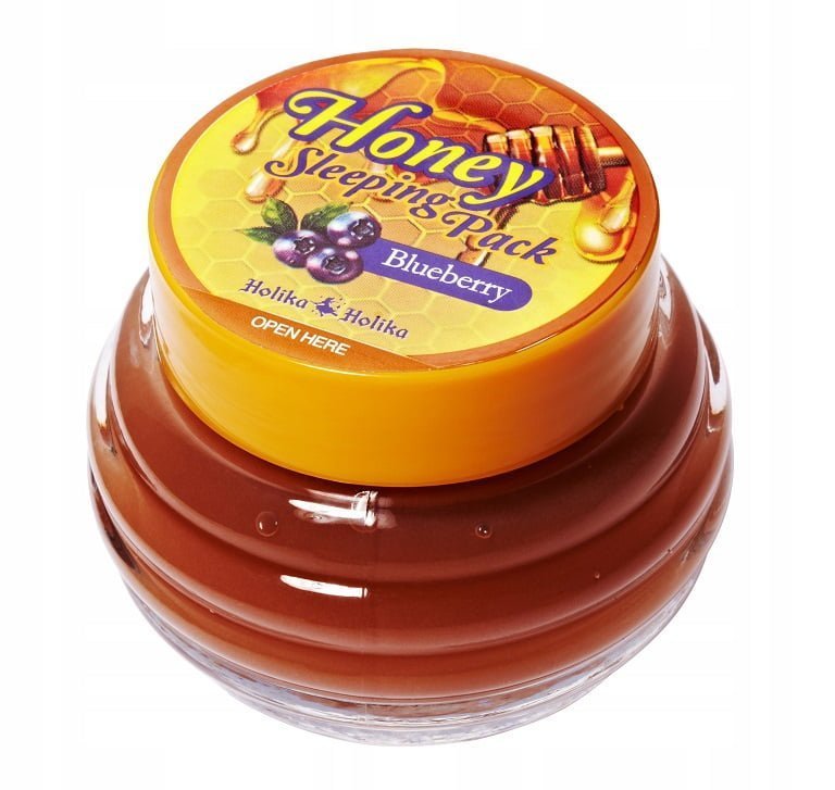 Holika Holika Honey Sleeping Pack to całonocna maseczka o konsystencji gęstego żelu z dużą zawartością bogatego w składniki odżywcze, minerały oraz aminokwasy miodu (20%). Miód skutecznie wiąże wilgoć w skórze pomagając ją dogłębnie nawilżyć przez cały dzień. W ten sposób pomaga ukoić suchą i szorstką skórę. Zawiera także ekstrakt z czarnej jagody który jest bogaty kwasy owocowe i aminokwasy, które przyśpieszają gojenie się zmian trądzikowych. Zwiększa koncentrację kolagenu, ujędrniając skórę. Wykazuje właściwości antyoksydacyjne, złuszczające oraz ściągające.