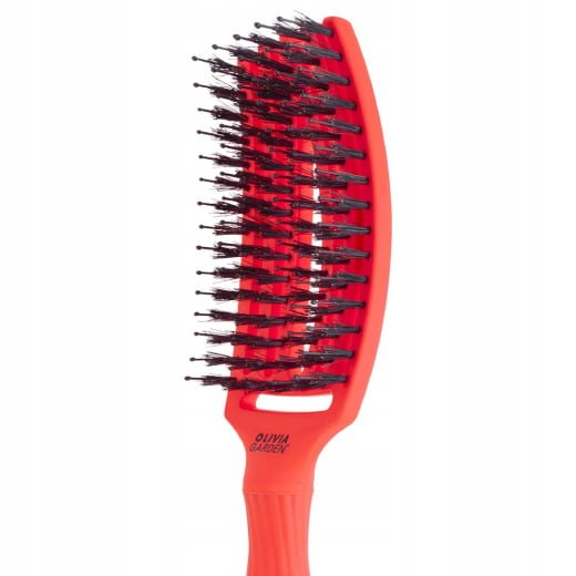 Włosie szczotki do włosów Olivia Garden Fingerbrush to połączenie włosia nylonowego z włosiem dzika. Włosie dzika ma właściwości antystatyczne, przez co włosy elektryzują się i są chronione przed uszkodzeniami mechanicznymi. Wyprofilowana głowica szczotki Fingerbrush Combo sprawia, że włosy nie plączą się, łatwiej się rozczesują, a przede wszystkim nie uszkadzają się podczas czesania.