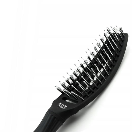 Włosie szczotki do włosów Olivia Garden Fingerbrush to połączenie włosia nylonowego z włosiem dzika. W szczotkach wykorzystuje się włosie dzika ze względu na właściwości antystatyczne, dzięki którym włosy nie elektryzują się. Specjalnie wyprofilowana głowica szczotki Fingerbrush Combo zdecydowanie ułatwia rozczesywanie, a przede wszystkim włosy nie uszkadzają się podczas czesania.