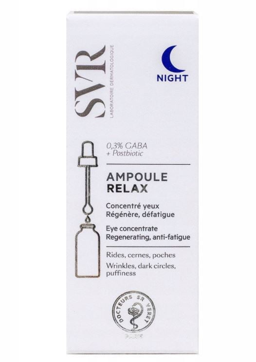 Skóra wokół oczu jest obszarem, który w pierwszej kolejności odzwierciedla upływ czasu. Pojawiają się cienie i worki pod oczami oraz drobne linie, które przekształcają się w zmarszczki. Jest pięć razy cieńsza niż reszta skóry twarzy i aktywna przez cały dzień, dlatego konieczne jest stosowanie ukierunkowanej pielęgnacji. Czy wiesz, że Twoja skóra ma swój własny zegar biologiczny zwany rytmem dobowym? Ampułka RELAX pozwala dostosować rutynę pielęgnacji okolic oczu do różnych pór dnia, aby zmaksymalizować efekty jej działania. Regeneruje, wzmacnia i wygładza skórę wokół oczu. Innowacyjne serum do stosowania na noc, pielęgnuje nawet najbardziej wrażliwą skórę wokół oczu. Działa kojąco, odprężająco i regenerująco. Unikatowe rozwiązanie zostało opracowane w sposób uwzględniający biologiczny rytm nocnej odnowy skóry, tak aby po przebudzeniu okolice oczu były wypoczęte, wygładzone i pełne blasku. Ekskluzywna oleo-żelowa formuła zawiera aminokwas GABA, dzięki czemu wzmacnia skórę i wygładza drobne linie i zmarszczki. Działanie post-biotyku w znaczący sposób koryguje cienie i worki pod oczami. Dołączona do ampułki innowacyjna pipetka zapewnia komfortową aplikację. Posiada ona gładką końcówkę przeznaczoną do wykonywania wraz z nakładanym preparatem delikatnego masażu, który maksymalizuje działanie kojące, poprawia mikrokrążenie zwiększając wchłanianie substancji aktywnych. Koniec ze zmęczonymi oczami. Od teraz po przebudzeniu okolice oczu są zrelaksowane, wypoczęte i wygładzone, jak po długim regenerującym śnie. Ampułka Relax zapewnia pełne doświadczenie terapeutyczne. Jedwabiste, oleo-żelowe serum wypełnione aktywnymi składnikami jest połączone z innowacyjną końcówką aplikatora służącą do masażu, która działa bezpośrednio na cienie, worki pod oczami, zmarszczki i drobne linie. Ekspercka formuła zaawansowana technologicznie czerpie swoją moc z: 0.3% GABA (kwas ƴ-aminomasłowy): Rozluźnia rysy twarzy, wygładza zmarszczki i drobne linie. Post-biotyk: Znacząco zmniejsza powierzchnię oraz kolor ciemnych cieni pod oczami oraz redukuje worki.