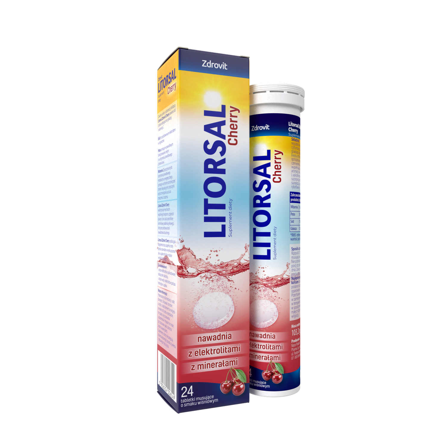 Litorsal Zdrovit Cherry zawiera sód i potas wzbogacony glukozą i witaminą C. Litorsal Zdrovit Cherry szybko gasi pragnienie oraz uzupełnia straty płynów powstałe w wyniku pocenia się w upalne dni lub w trakcie wysiłku fizycznego. Sód jest podstawowym elektrolitem, regulującym dystrybucję wody w organizmie. Potas pomaga w prawidłowym funkcjonowaniu mięśni i w utrzymaniu prawidłowego ciśnienia krwi. Witamina C przyczynia się do utrzymania prawidłowego metabolizmu energetycznego, pomaga w ochronie komórek przed stresem oksydacyjnym, przyczynia się do zmniejszenia uczucia zmęczenia i znużenia.